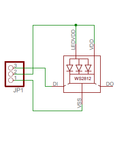 Zur Überwachung des Akkuszustandes und dessen Ladung wird eine digitale RGB-LED vom Typ WS2812 verwendet. In der Regel wird diese LED in programierbaren Lichterketten eingesetzt, doch natürlich lassen sich solche Typen auch einzeln einsetzen. Die LED hat je einen Versorgungspin für LED und Logik. Diese wurden der Einfachheit halber zusammengefasst. Das hat sich als nachteilig erwiesen, weil die Logik auch im Standbymodus der Lampe Strom verbraucht. Die Schaltung wurde daher so angepasst, dass die LED direkt aus einem Port des Prozessor versorgt wird. Weil in der Dunkelheit die Leuchtkraft der LED sowieso reduziert werden muss, kann der Strom unterhalb der 40mA Limite für diesen Pin gehalten werden.